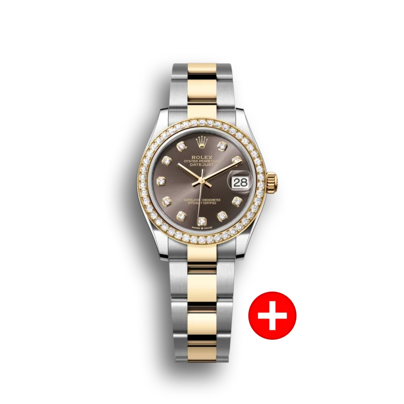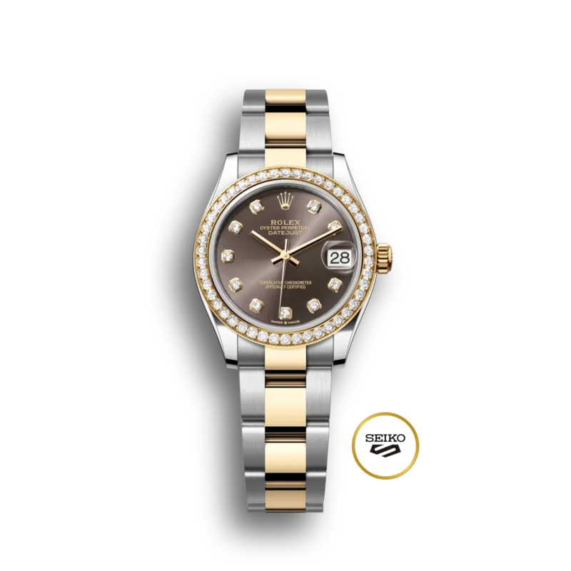 The diamonds on this dial are set in gold imitation. Numerous dials in the Oyster Perpetual range have beautiful light reflections thanks to the sunray coating. Expert brushing techniques are used to achieve it, resulting in grooves that radiate outward from the dial’s center. Every etching has light that is uniformly diffused, giving the piece a distinctive, delicate glow that changes with wrist position. Following the completion of the sunray finish, electroplating or physical vapor deposition are used to apply the dial color. The dial is finished with a thin layer of varnish.