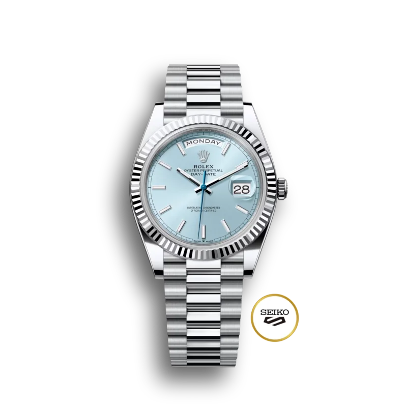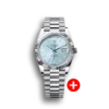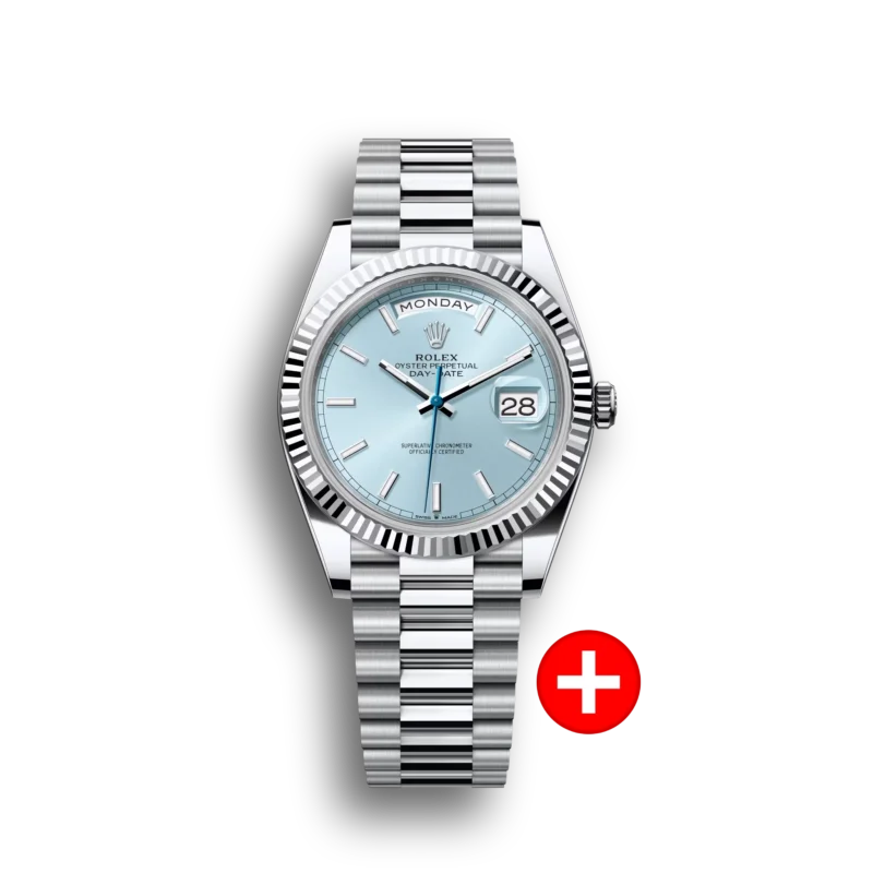 The subtle and special hallmark of a Rolex watch is its ice-blue face. The most noble metal, platinum, is used by Rolex to create their finest timepieces.