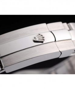 | Bracelet | Polished stainless steel link bracelet with Rolex engraved fold-in deployment clasp displaying the Rolex logo |